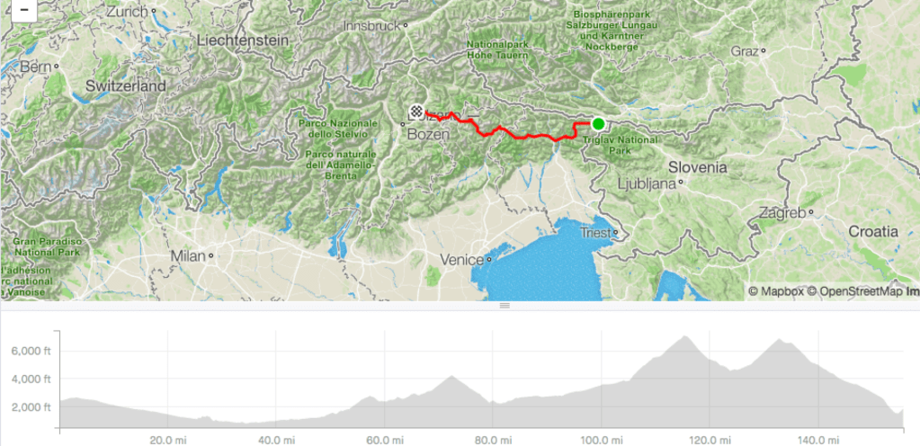 Most of todays riding was in the Dolomites and I would be reaching the parcours of Checkpoint 3, just after Cortina d’Ampezzo. Most riders had decided to take the flatter route, South of the major hills, sticking to flat roads, and heading for the CP from a more Southerly direction. I decided to tackle the hills head on, for some reason, and had a couple major climbs (one over 7,000ft) to compete with before the challenging parcours had even started. Was I questioning my decision, maybe slightly. I refrained myself from looking at the tracker website to see how quickly people were going along the other route.