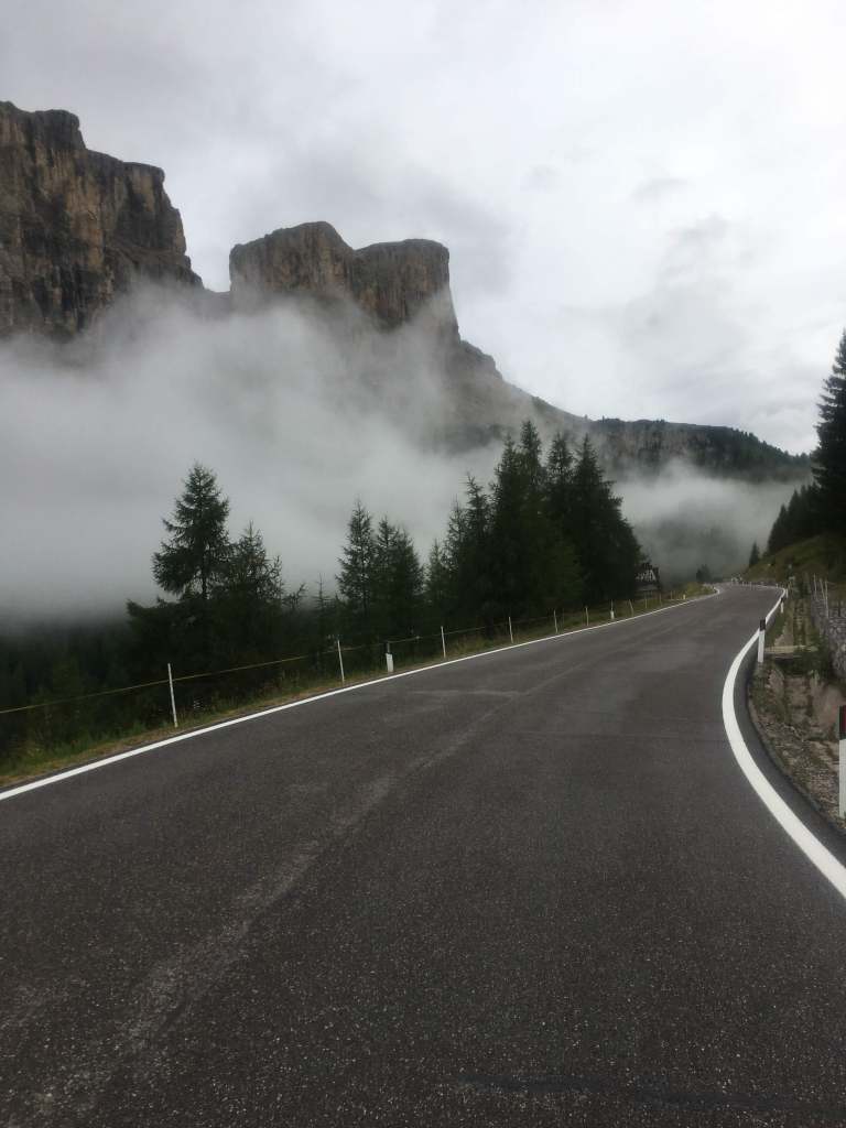 This wasn’t too hard as the parcours started with the Passo Gardena, a switchback climb up to over 2,000 meters. Nicely warmed up, I settled into a rhythm and as the rain stopped I sang to Steely Dan on my way up the climb as if the cold shivering spell had never even happened. Also seeing a few other racers made me feel a bit more connected to the race and recognising some faces reassured me that I wasn’t too far off the pace.