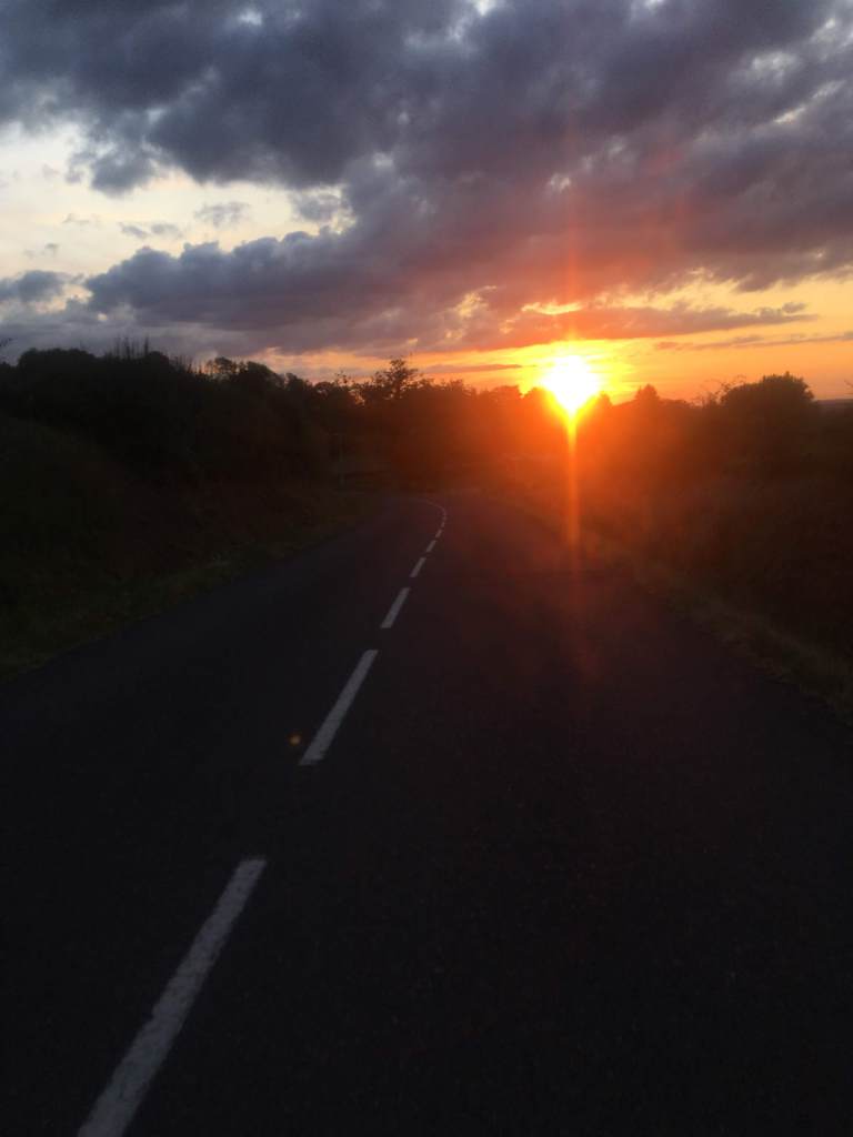 With around 40 miles to go, another racer caught me up. We chatted for a little while and again, his pace was much higher than mine so he cracked on. As the sun was setting and darkness started to take over, his rear light was flashing around half a mile ahead of me. As the roads were straight, I could see it well. So to spur me on, I made a pact with myself that I needed to keep that rear red light in sight and I would make it in time.