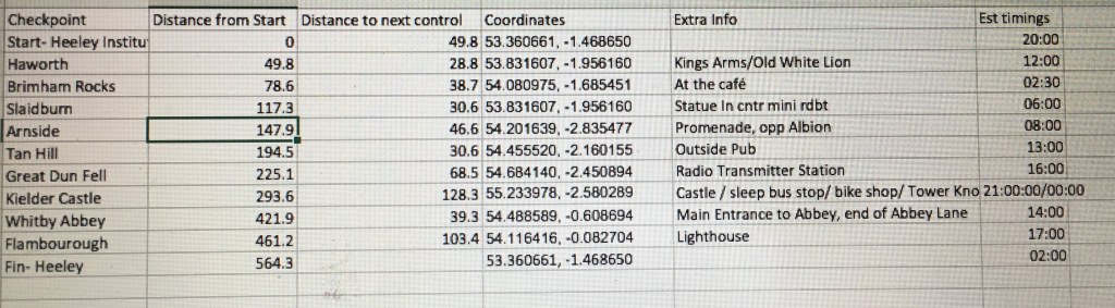 ‘unsupported journey through the North of England by bicycle… The control points will be scattered across the north of England in a roughly circular distribution but with a couple of wildcards thrown in the centre.‘