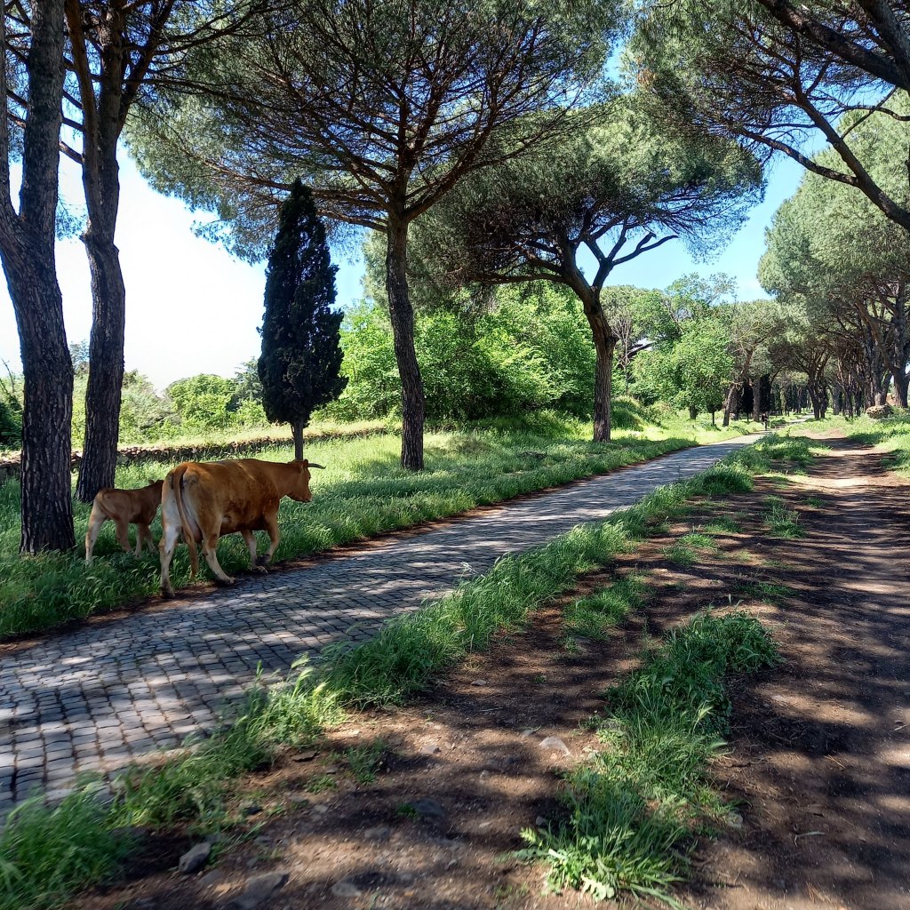 Passing groups of pilgrims, including a few Nuns, I was eventually spat out of the hills and onto the Via Appia Antica, the true Roman Road. Turns out the first section was completed as a military road to the south in 312 BC. Cobbles the size of paving slabs. It was fun going, dodging day trippers, cows and the odd adventurous car in the baking sunshine. All roads lead to Rome, especially this one. Such a privilege to cycle this.