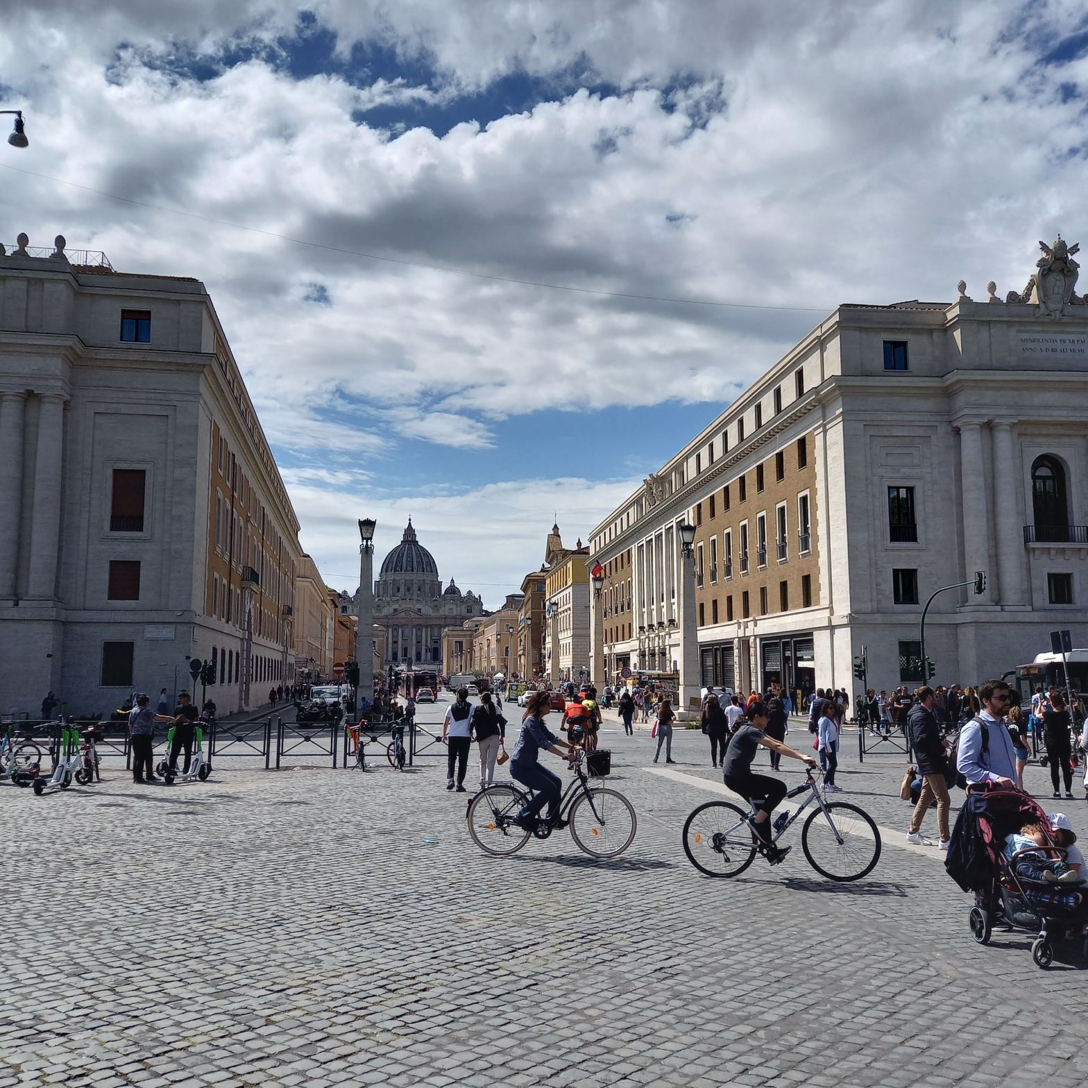 After riding all the way round the base of the colosseum, I bumped into a few other racers, so we road out of the busy city streets together, past the Vatican and onto a smooth cycle path.