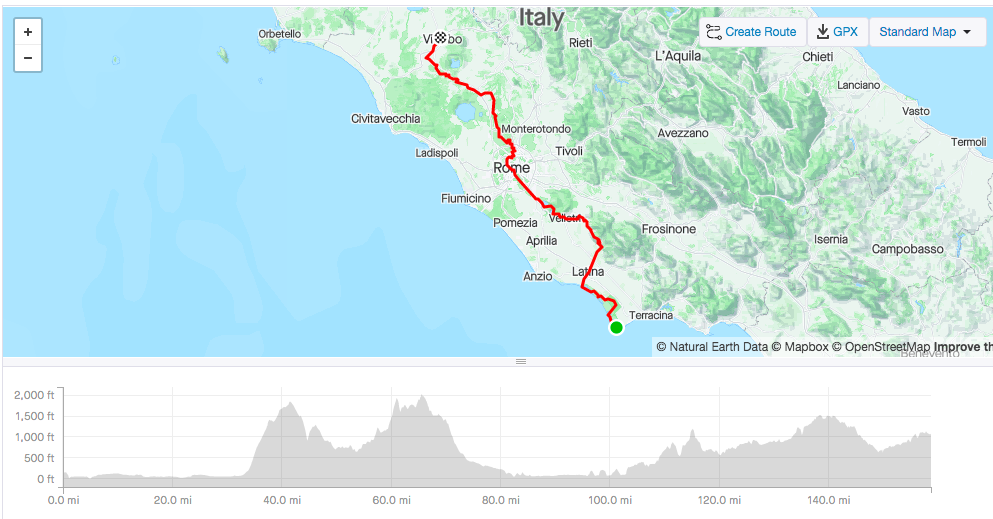 After this road section, the route joins the Via Francegina, which is, according to Wikipedia is an ancient road and pilgrimage route running from the cathedral city of Canterbury in England, through France and Switzerland, to Rome and then to Apulia, Italy, where there were ports of embarkation for the Holy Land