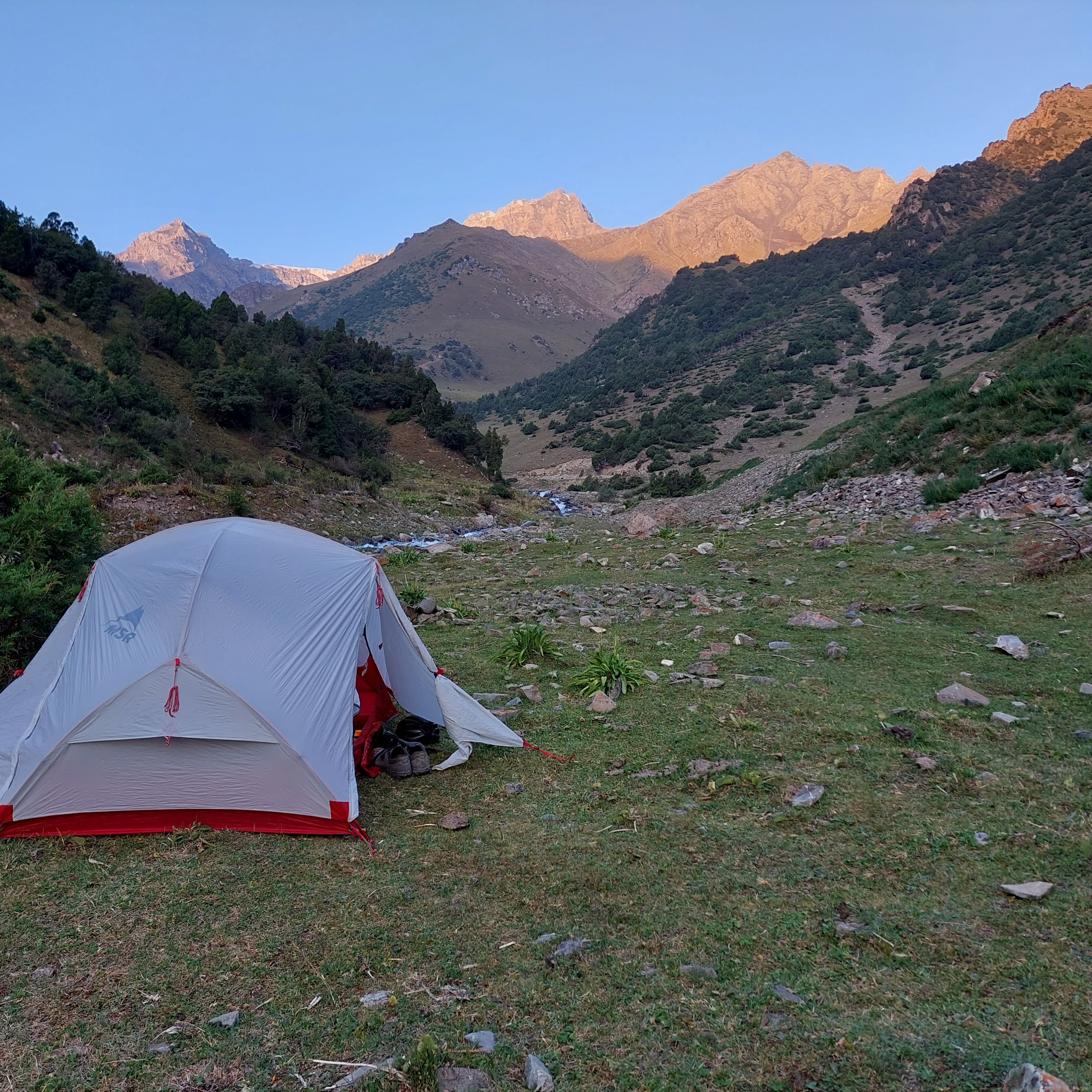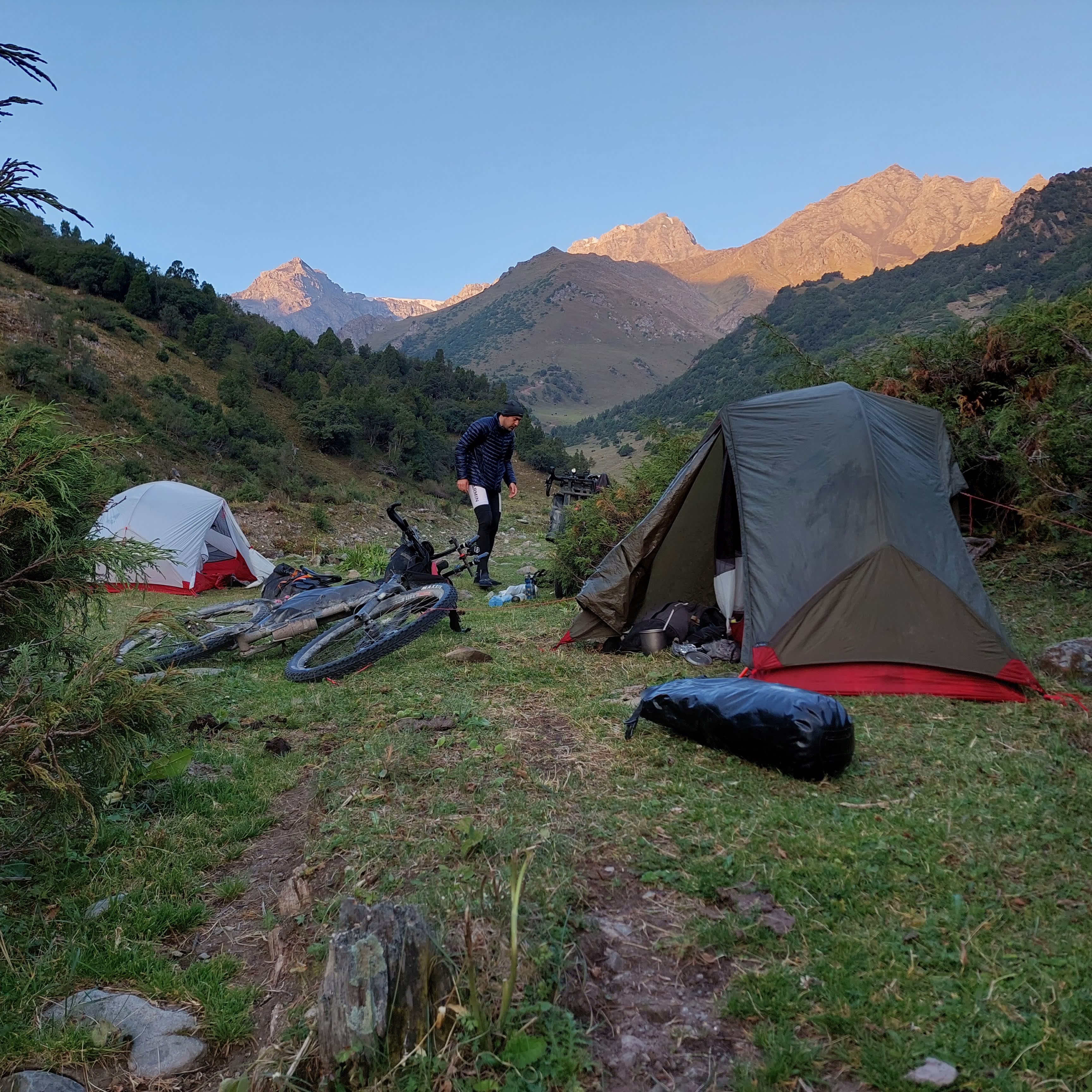 We rode until around 7pm, around 2800 meters above sea level and then found a place next to the river to set up camp.