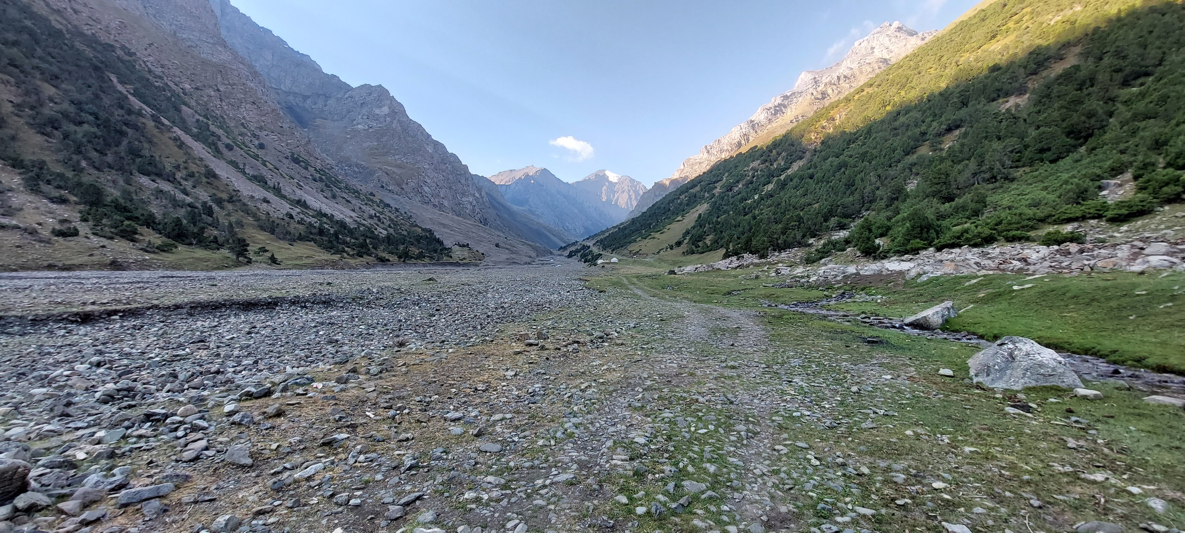 The sun stated to come into the valley and the views were beyond breathtaking. I stopped to take photos. Although it was also an excuse for breather. Pushing became tougher and tougher, however this was just because of the big rocks and gradient, the altitude didn’t seem to be affecting me and I still felt pretty strong.