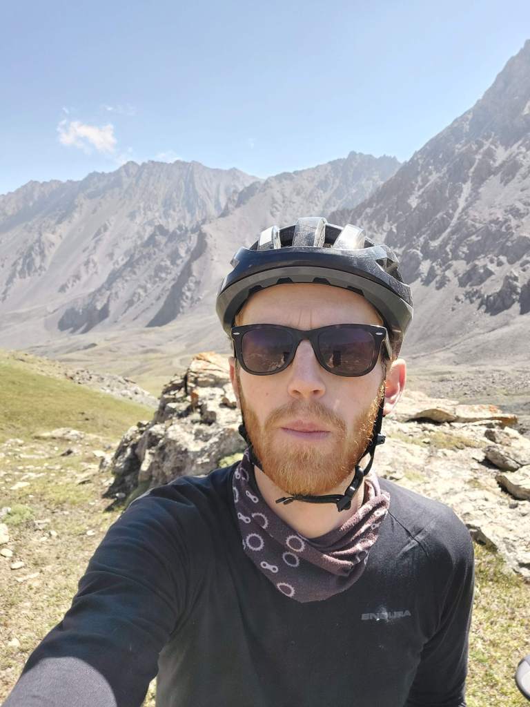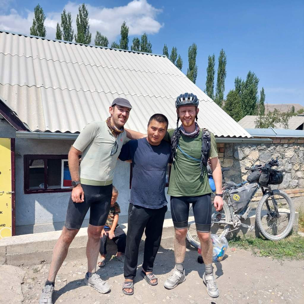 I then went back into his shop and tried to pay for an ice cream. The shop owner refused and made me get one for David too. He wouldn’t take any money. 2 shops gone into in Kyrgyzstan and 2 times we have been given free things. Amazing, the locals (apart from the sweary kids) have been so welcoming. The shop owner came outside to sit next to us and we had a disjointed conversation through Google translate and miming. The kids also join in and it turns out all 5 kids are his. He asks for a photo, and I do too. I love this part of bike touring. Racing I would have been thinking about how long this interaction was taking, but touring, I was lapping it up and loving it all.