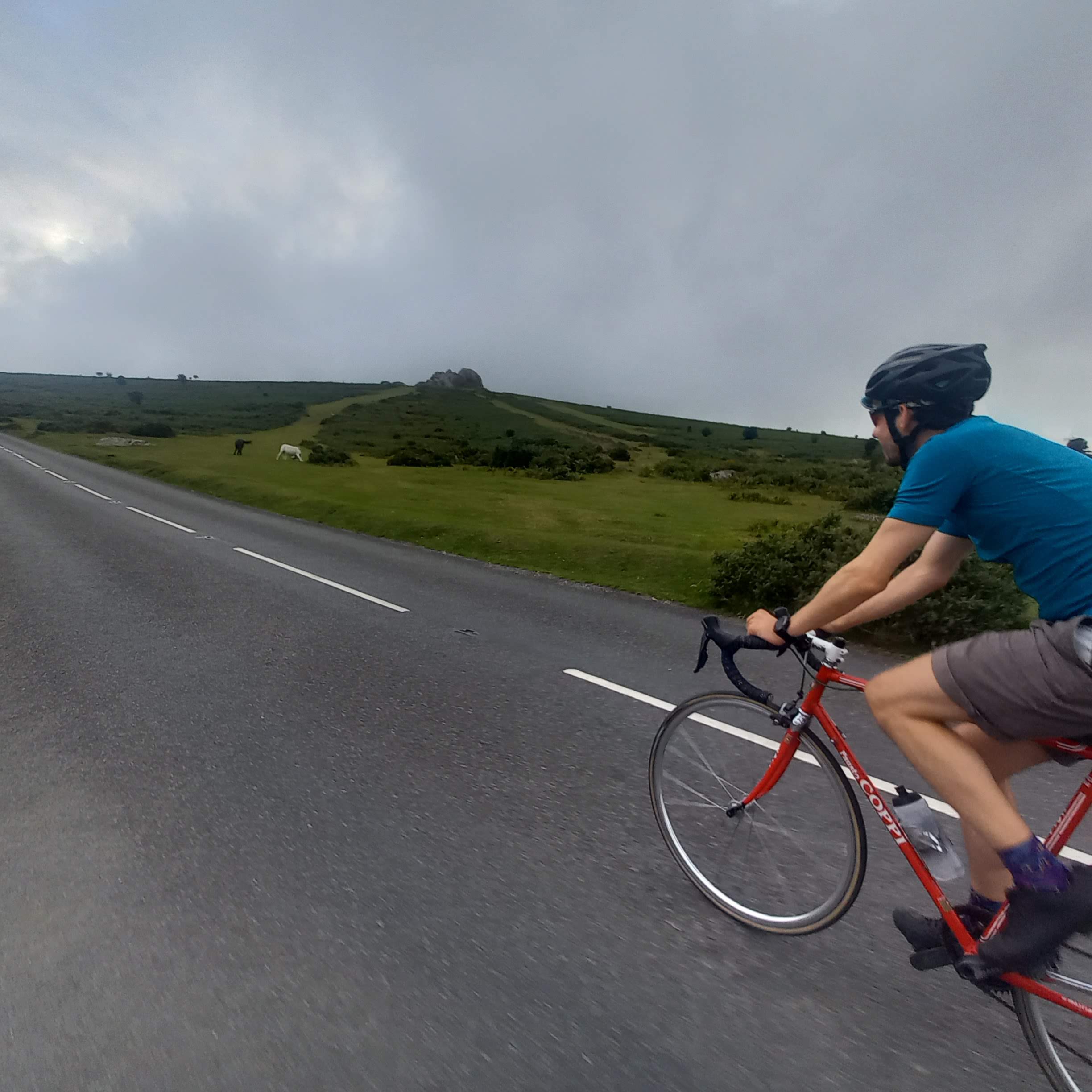 Not feeling 100%, I wasn’t too keen on his suggestion of riding up Haytor before tea, but hey I might never get the chance again, so instead of taking my heavily loaded bike, I dropped it off and borrowed one of Andys nice light road bikes.