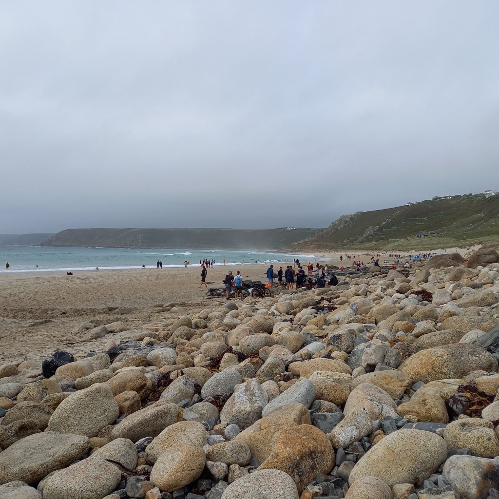 I cycled the 10 mile or so to St Just, where my bnb was for the night above a pub. I relaxed for a bit then headed down to Sennen Cove, where there was a pre-race meet up on the beach.
