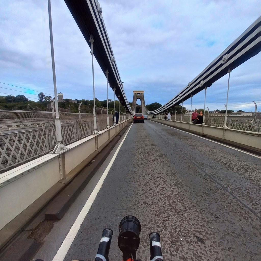 The Mendips were tough. I didn’t really think about them too much as thought I was close to Bristol, which I was, but the Mendips were in the way. A big off road climb, a lot of pushing ensued and some muddy descending saw me pop out in Bristol around tea time. It was very tempting to stop and waste some time in one of the many restaurants I passed, but no, head down and aim for the Severn bridge to Wales.