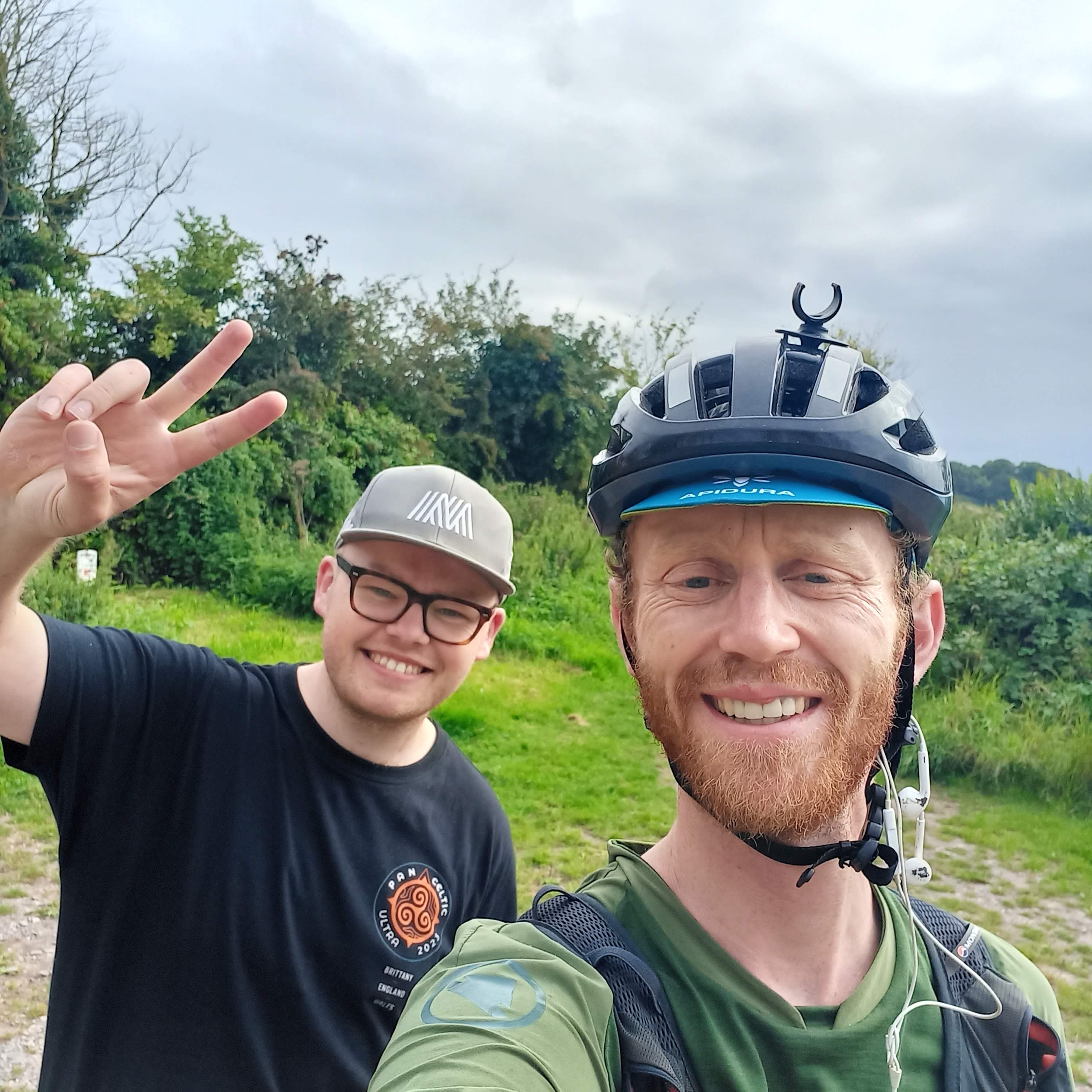 After a brief stop at a petrol station in Bridgwater for some overpriced pastires and coffee, I was aiming for Bristol. The next 30 miles or so were pan flat, mostly on road. To my surprise, Karl, who I had raced with in Italy in 2022 and at All Points North this year was on the road ahead of me. He lived close by and rode with me for about 30 minutes. it was great to catch up and I was so thankful he came out to cheer me on. He gave me a run down of the route to Bristol and knew I was in for a big off road climb and some awkward off road sections to get there. Thanks for coming out Karl!!