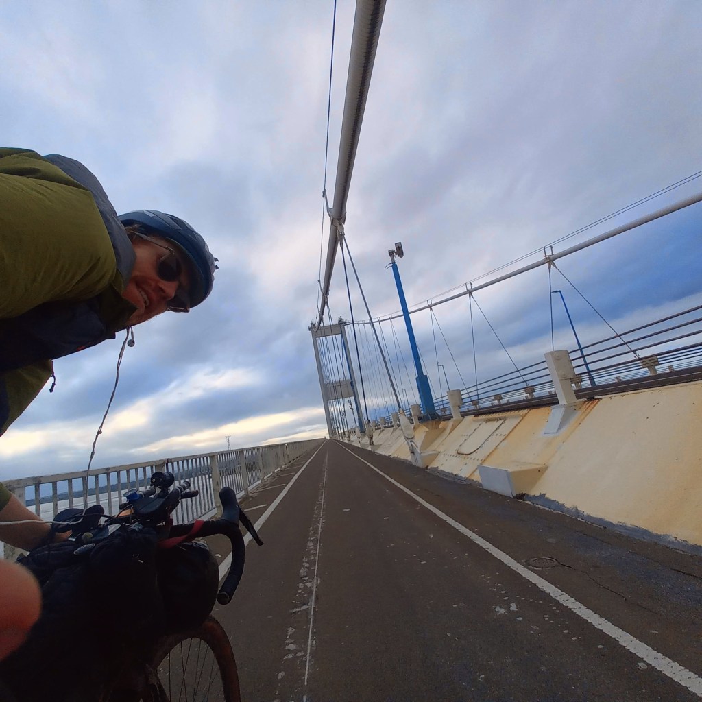 Another great surprise was a dotwatcher out cheering riders on. I stopped for a few minutes and we chatted about long bike races and our favourite sweet snacks, then I set off and the excitement grew and I got closer to the Severn Bridge.