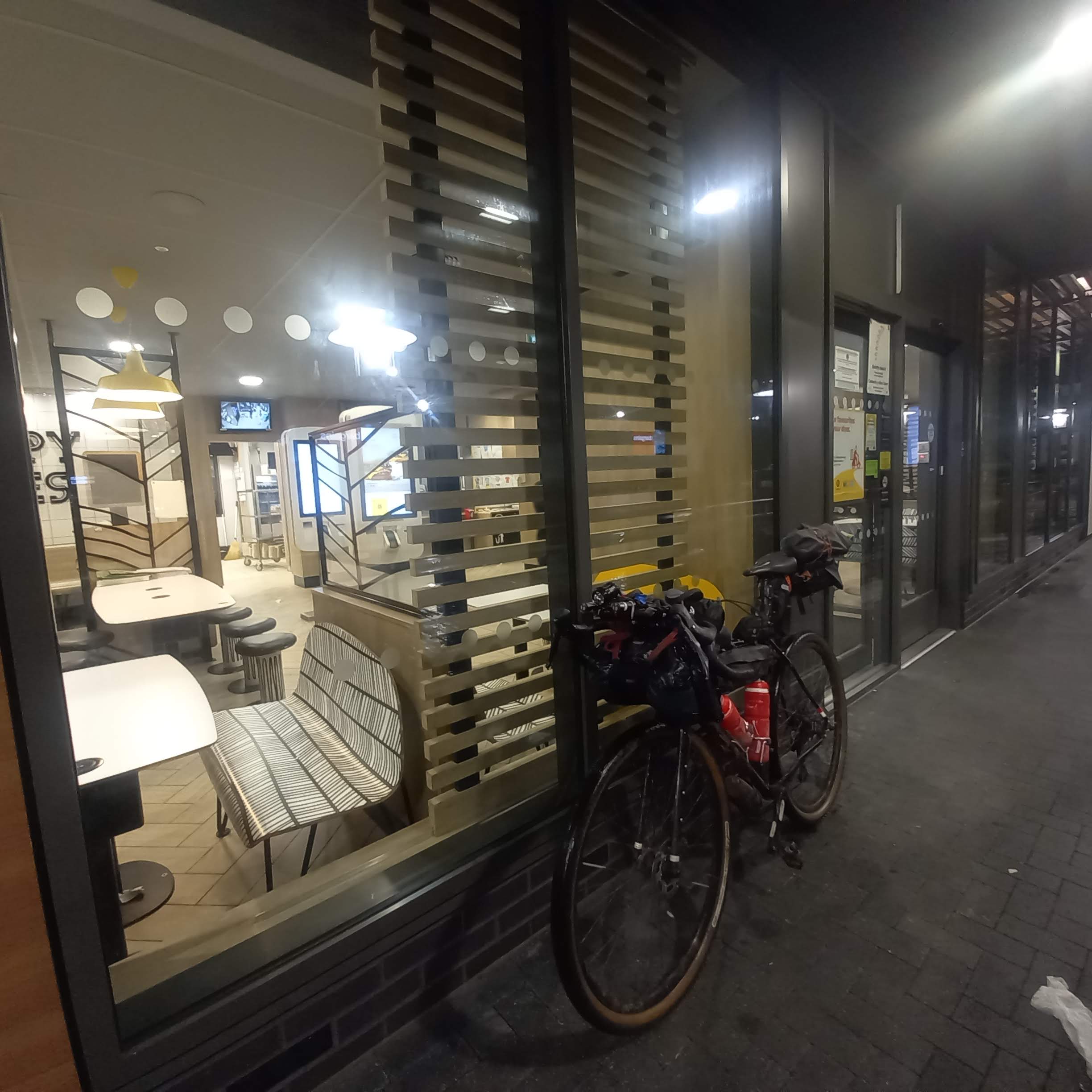 A second ( or third or fourth) wind caught me when the constant calculations made it slightly possible that I could make Mcdonalds before closing time. The draw of the golden arches spurred me on through the night and I made it for 10.30pm, 30 minutes to eat, warm up and look where I was going to sleep that night.
