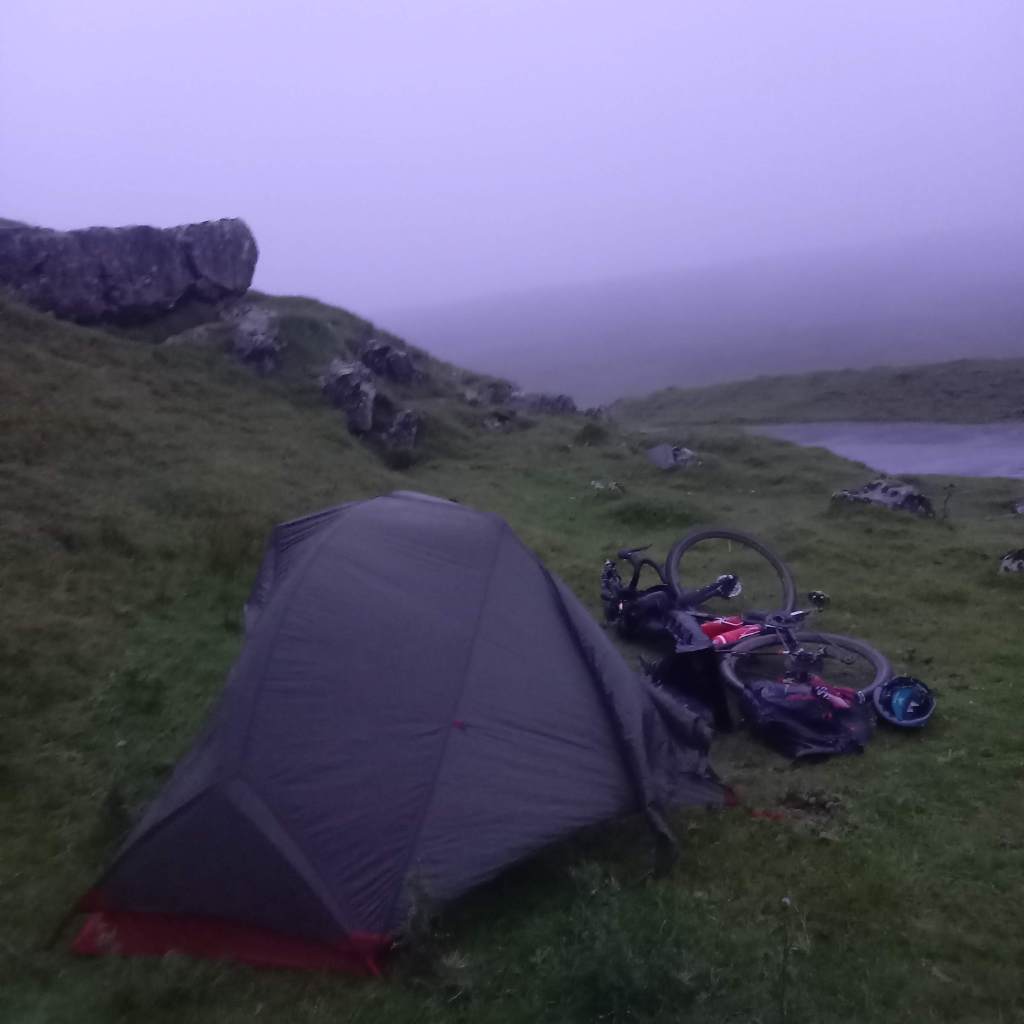 After getting through the off road section, I was now thoroughly soaked through and knackered, it was around 1am. I found a piece of grass over a fence, threw my bike over and awkwardly set up my tent in the rain. First day over.