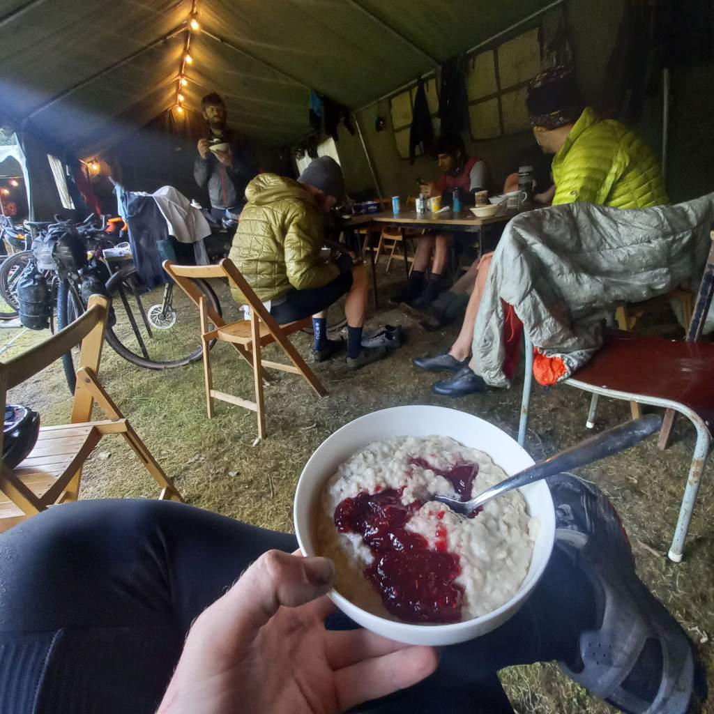 After chatting with a few other riders about the experiences of the first stage and chatting with trepidation and excitement about the next stage, I wolfed down some porridge and coffee and was ready to go.
