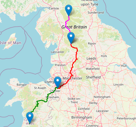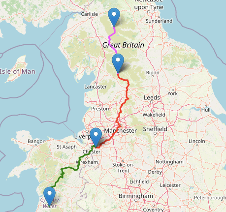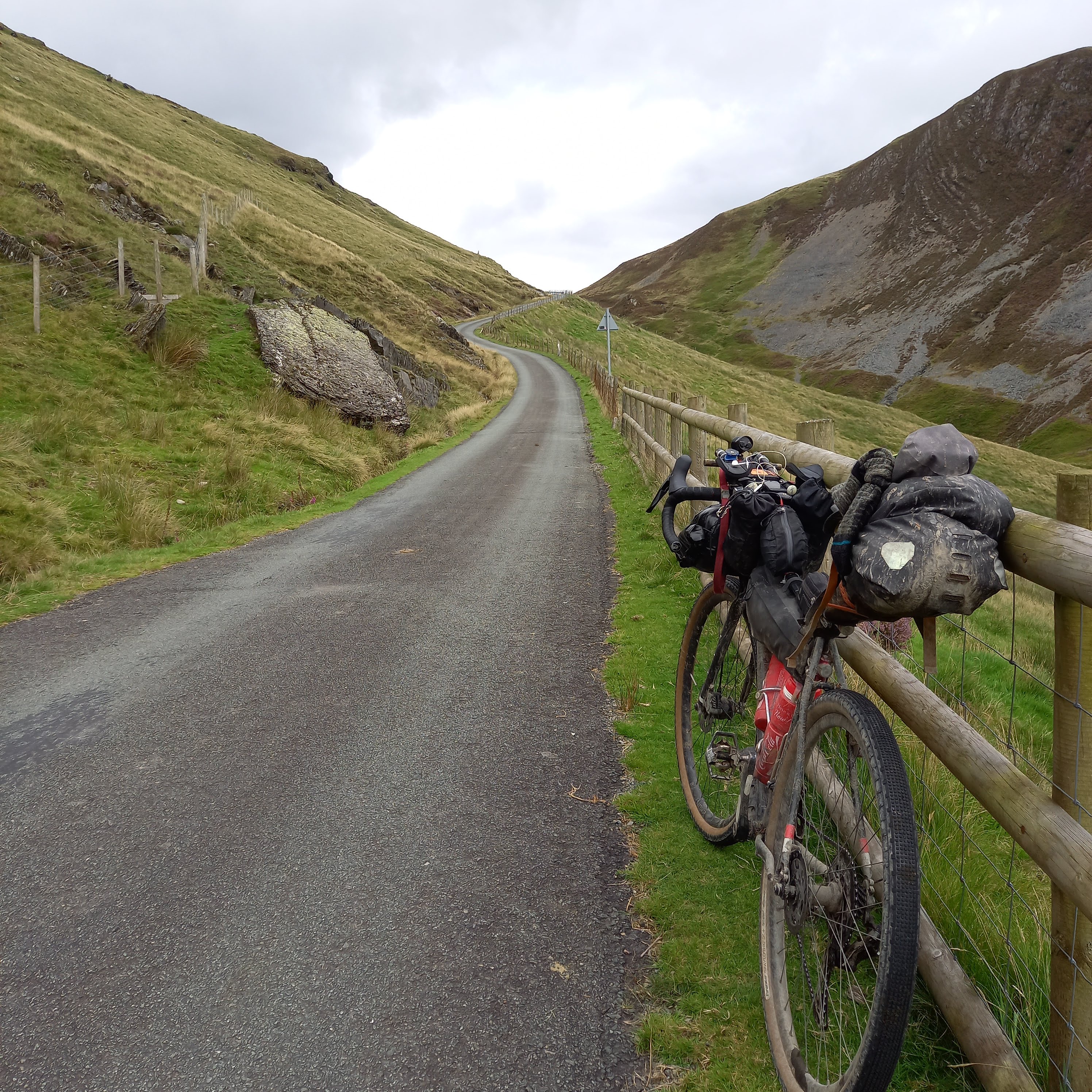 Bwlch Y Groes loomed. This is the second highest public road mountain pass in Wales, with a summit altitude of 545 metres. And my word, is it steep. It is straight up, with no corners. In the midday heat with not really much food in my belly, it was a toughy. I had no issues with getting off and pushing my heavy rig up the climb. What cheered me on was a group of LEJOG cyclists who overtook me on the climb with their support van clapping and cheering me on.