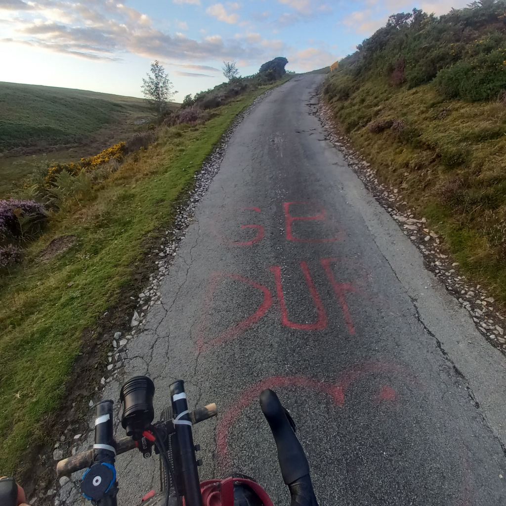 I woke up with the bottom half of my tent collapsed where the pole had broke, so not a great fix. It was dark and I was pretty tired, so I gave myself a break. The field I was in was full of sheep, so not a bad shout and there wasn’t really much flat ground around either. I packed up and lifted the bike back over the gate and headed north again by about 6.20am.