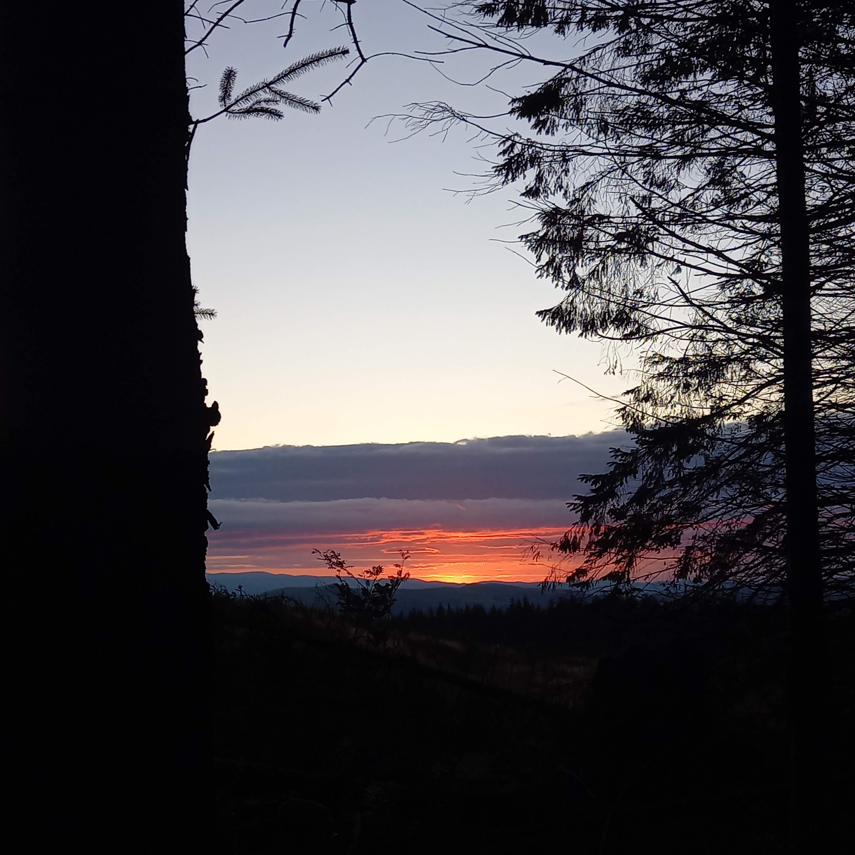 Full up and stocked up at the shop for the night, I continued on for a few miles with Paulius back into the hills. The next section was through a lot of muddy farmers fields with lots of gates and the sun was setting.