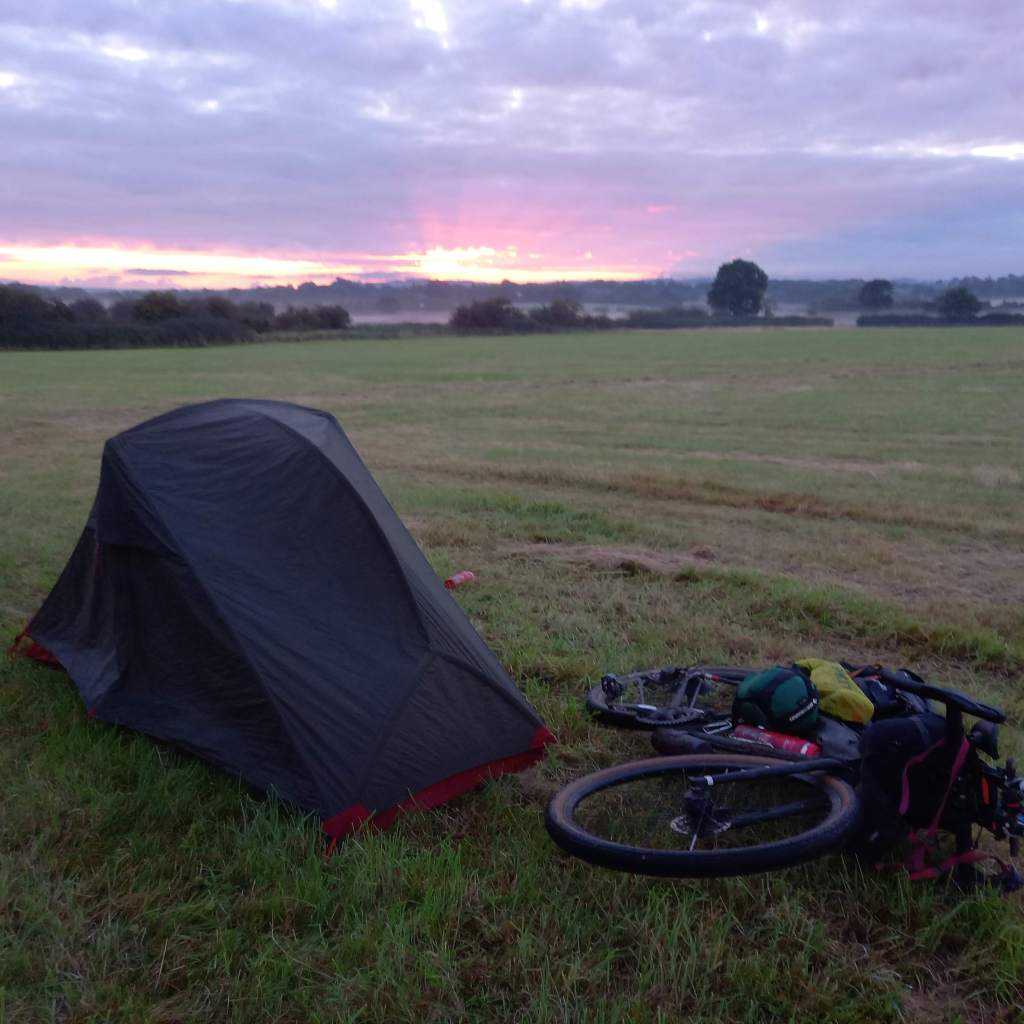 I left Chester around 10pm and fought through the nightlife onto the cyclepath. I then entered the small lanes of Cheshire and sleep started to get the better of me. It was super quiet and I passed a field that looked too perfect not to camp in. So I hopped over the fence with my bike, set up the tent and settled down for the night.