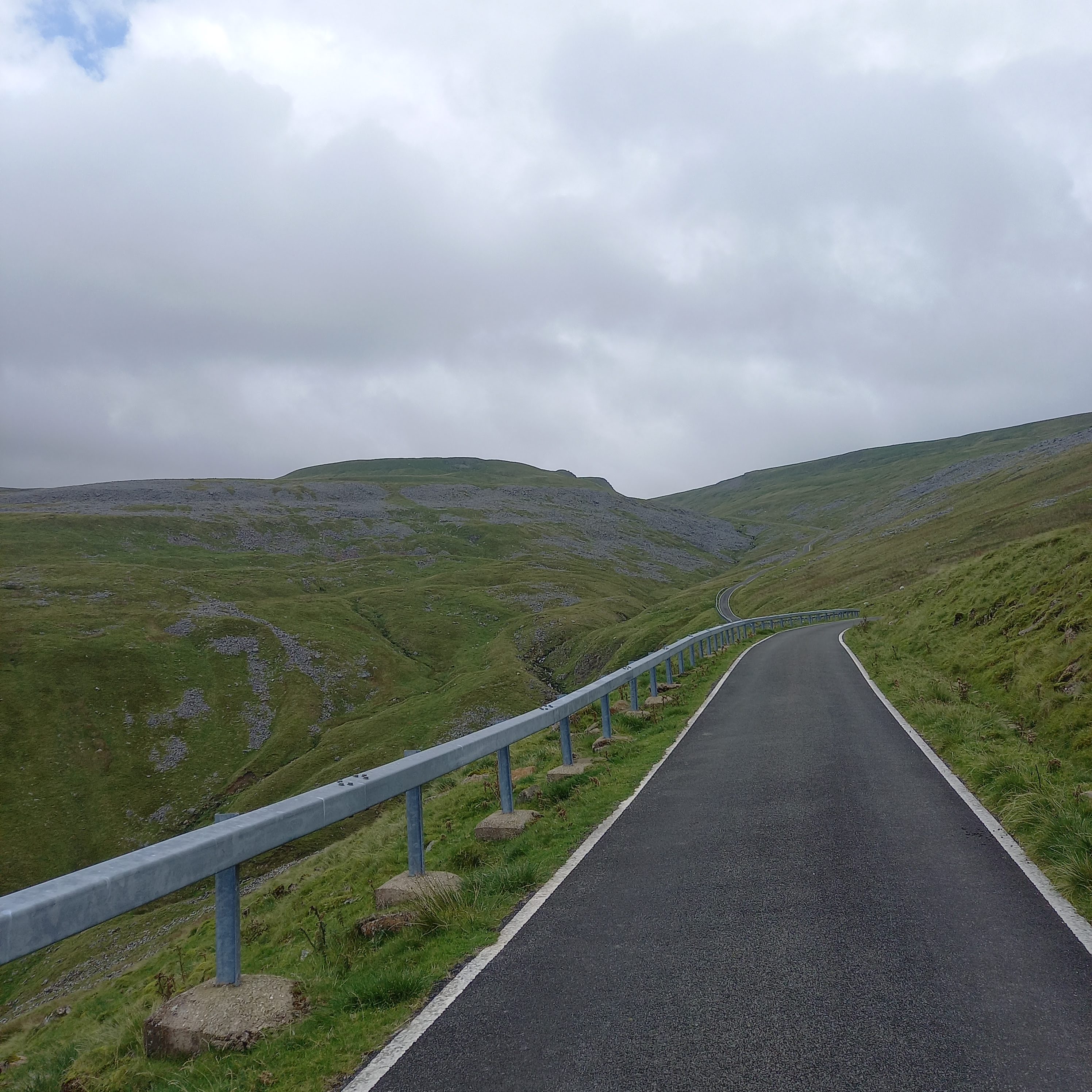 Whilst I was overthinking what to do about my broken tent, I back and forthed a bit with a few other riders, Alex, Adrian and Paulius in the mist on the hills above Hawes and then descended down the road to Kirkby Stephen.